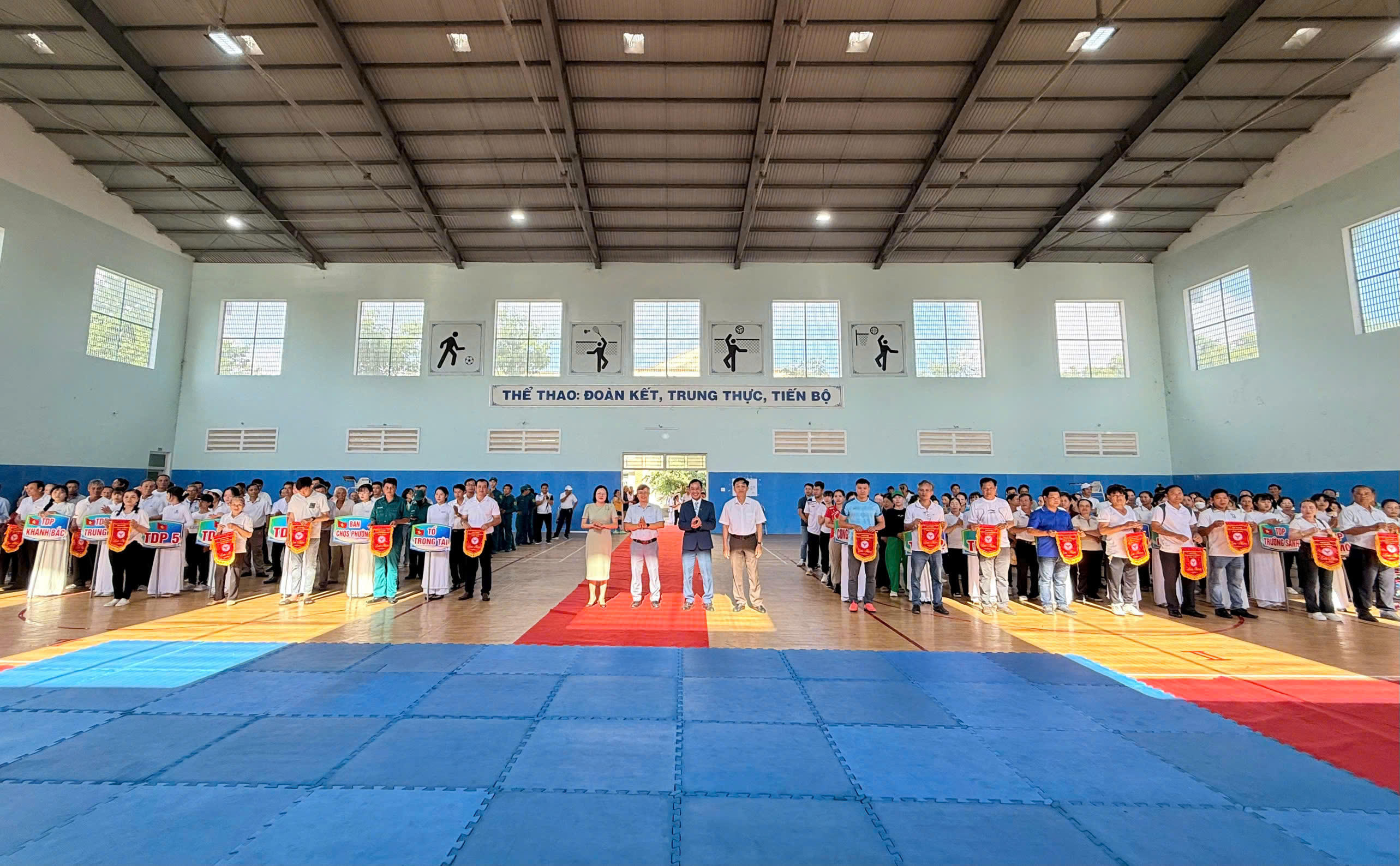 Lễ khai mạc được mở màng trong không khí sôi nổi với tiết mục đồng diễn Aerobic của các em học sinh, tiết mục văn nghệ và phần biểu diễn võ thuật của Câu lạc bộ Karatedo Đức Phổ.