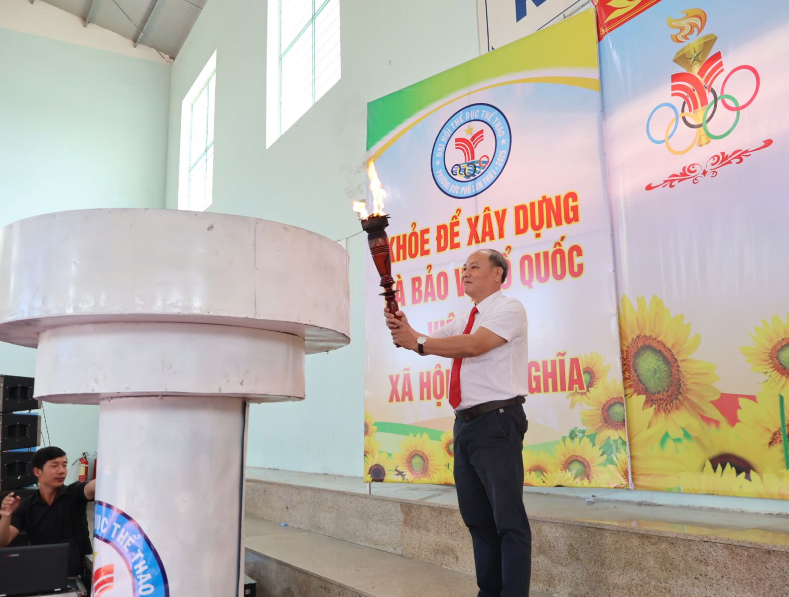 Trước khi đại diện Tổ trọng tài và vận động viên tuyên thệ, đồng chí Hoàng Hải, Trưởng ban Chỉ đạo Đại hội đã châm đuốc thắp sáng đài lửa; ngọn lửa vươn cao biểu thị cho tinh thần thể thao “Đoàn kết - Trung thực - Cao thượng - Tiến bộ” của Đại hội. Lãnh đạo phường cũng đã tặng cờ lưu niệm của Ban Tổ chức cho các đơn vị tham gia các môn thi đấu trong khuôn khổ Đại hội Thể dục Thể thao phường Đức Phổ lần thứ I - năm 2025.
