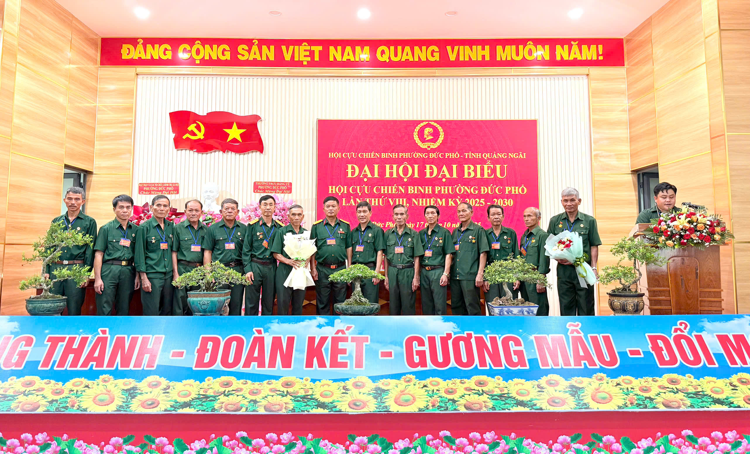 Đại hội cũng đã thông qua Quyết định chỉ định Ban Thường vụ Hội Cựu chiến binh phường Đức Phổ khóa VIII, nhiệm kỳ 2025 - 2030 gồm 4 đồng chí, Ban Chấp hành gồm 16 đồng chí, chỉ định đoàn đại biểu dự Đại hội đại biểu Hội CCB tỉnh gồm 3 đồng chí. Đồng chí Nguyễn Nguyên Trạng được chỉ định giữ chức Chủ tịch Hội Cựu chiến binh phường khoá khóa VIII, nhiệm kỳ 2025 - 2030./.