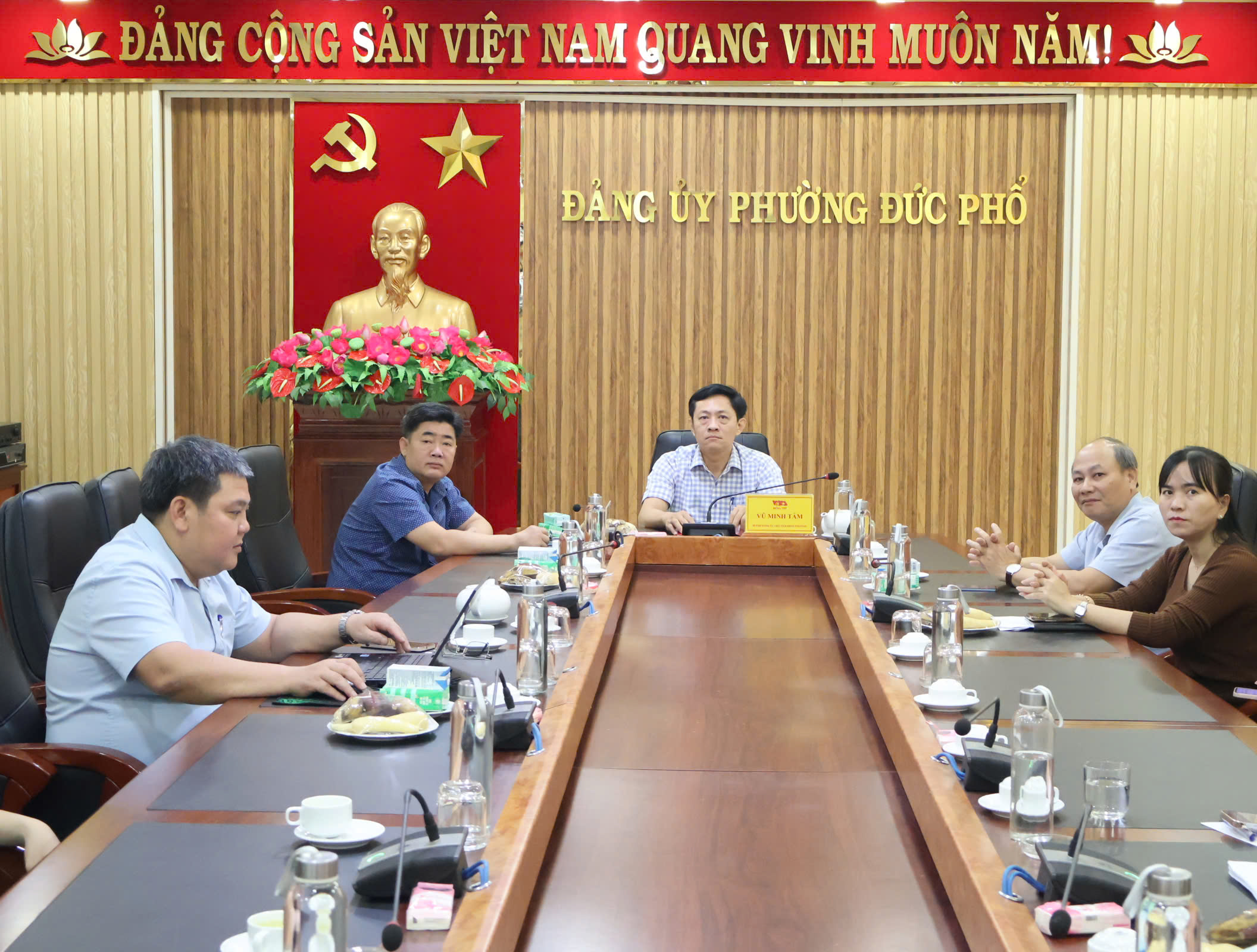 Tham dự hội nghị tại điểm cầu phường Đức Phổ, có đồng chí Vũ Minh Tâm, Bí thư Đảng ủy, Chủ tịch HĐND phường; đồng chí Lê Văn Bình, Phó Bí thư Thường trực Đảng ủy phường; đồng chí Hoàng Hải, Phó Chủ tịch UBND phường; đại diện lãnh đạo Ban Xây dựng Đảng Đảng uỷ phường, Ủy ban Kiểm tra Đảng ủy phường, các Ban của HĐND phường; Phòng Văn hóa - Xã hội phường; Trung tâm Cung ứng dịch vụ công phường.