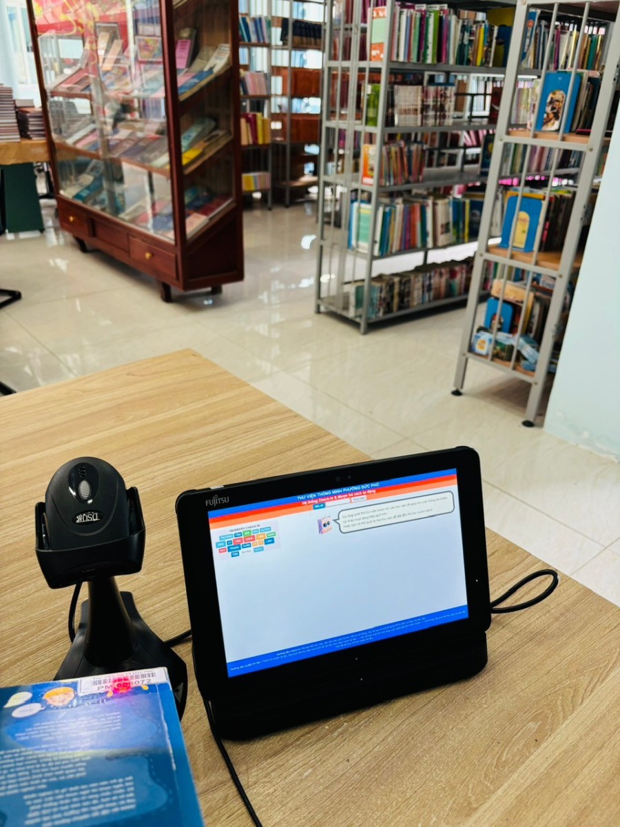 Nhằm bắt kịp xu hướng chuyển đổi số trong hoạt động thư viện và tạo điều kiện thuận lợi để người dân tiếp cận tri thức một cách nhanh chóng, tiện lợi, Thư viện phường Đức Phổ chính thức triển khai mô hình “Thư viện Thông minh - Vietbiblio”. Mô hình được triển khai từ Chương trình “Cùng bạn đọc sách” với sự tài trợ của Vietbiblio, bao gồm 01 máy tính bảng và 01 máy quét mã vạch, hỗ trợ việc mượn - trả sách trở nên dễ dàng và hiện đại hơn.