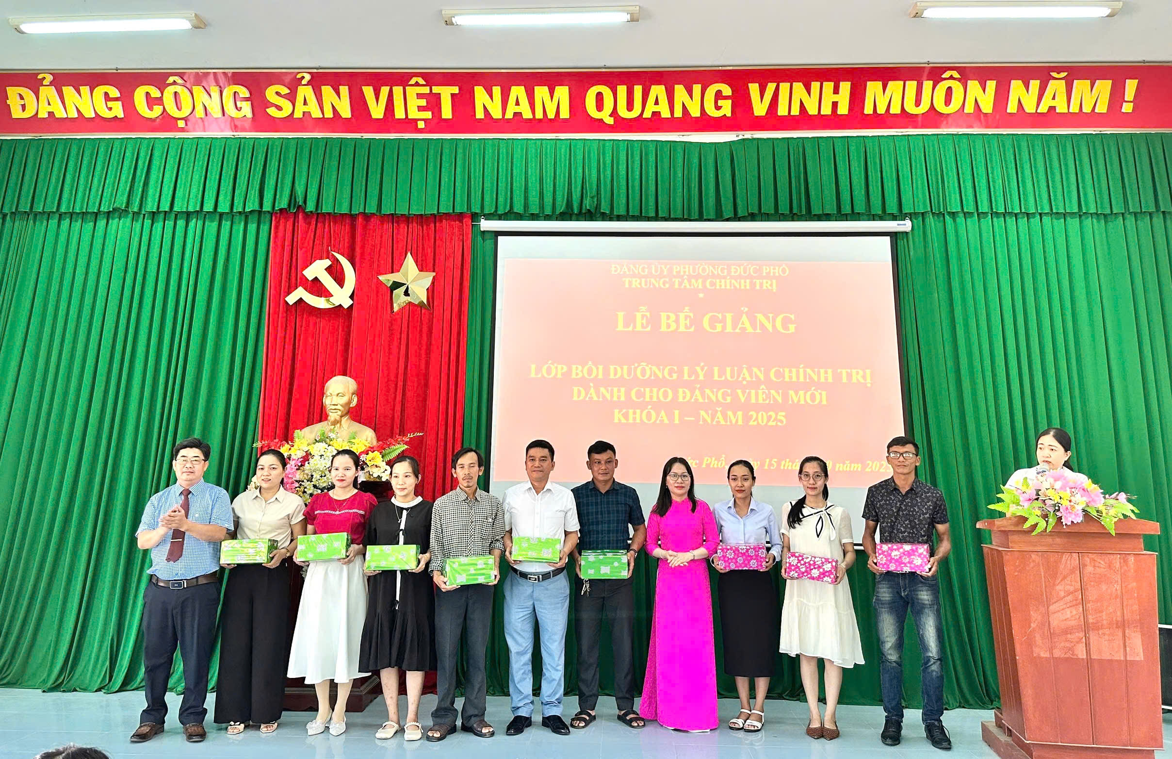 Chiều ngày 15/10/2025, Trung tâm Chính trị phường Đức Phổ tổ chức Lễ bế giảng lớp bồi dưỡng lý luận chính trị dành cho đảng viên mới.